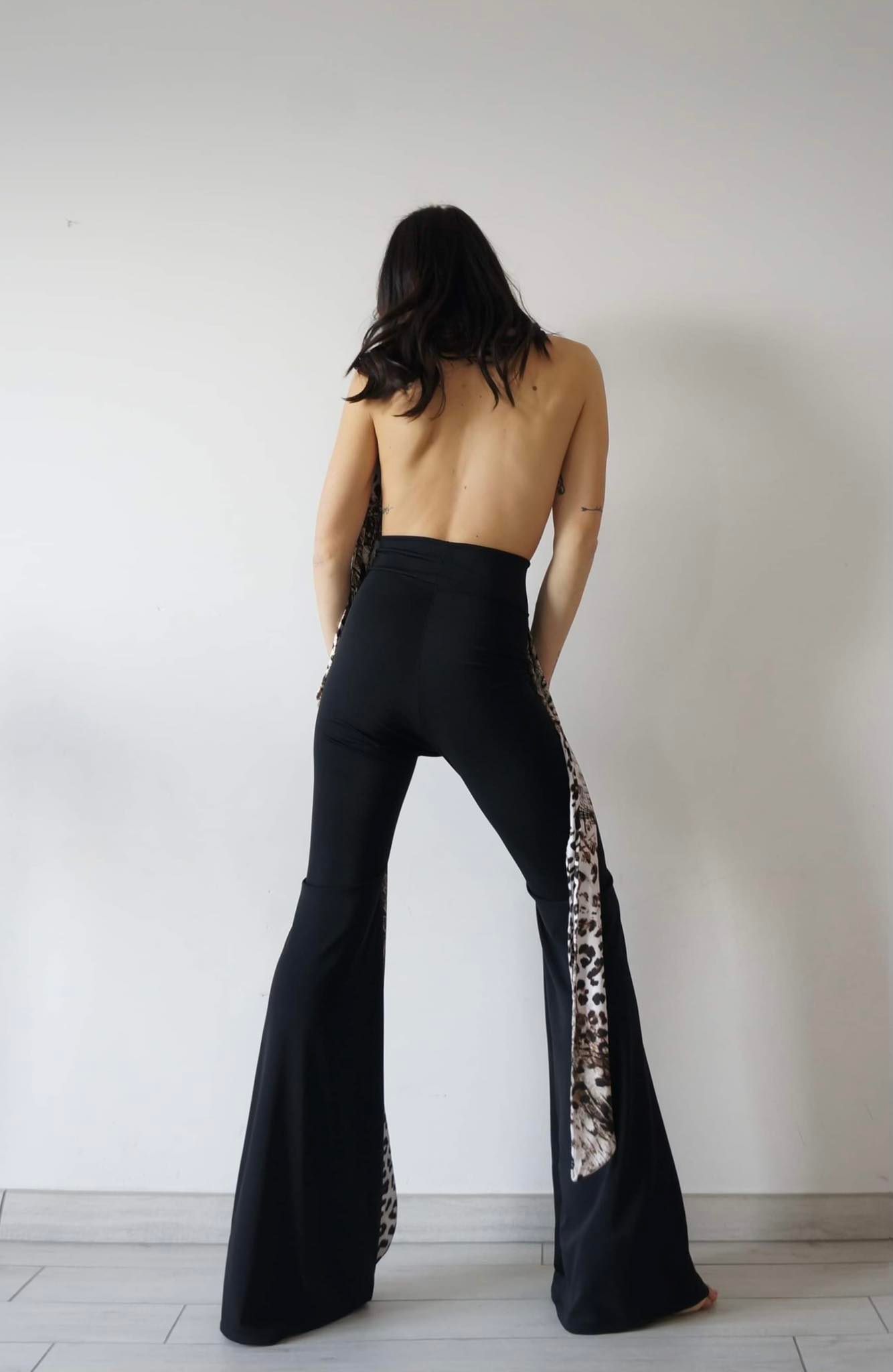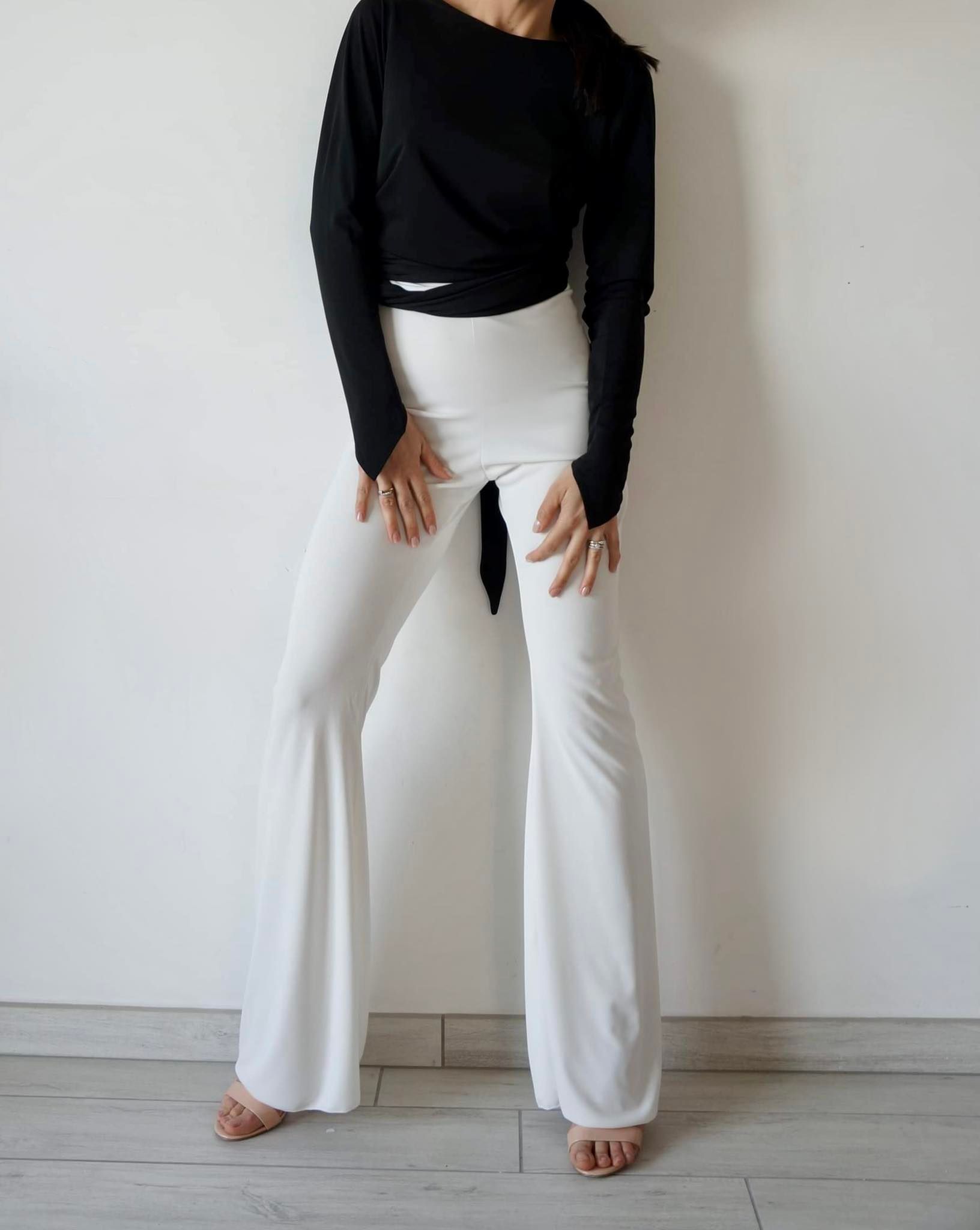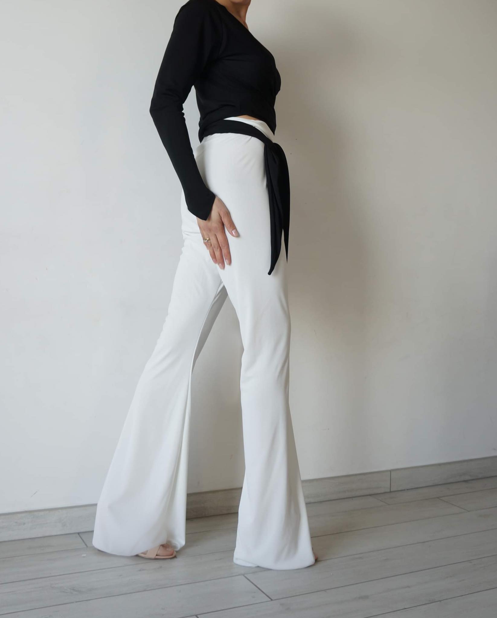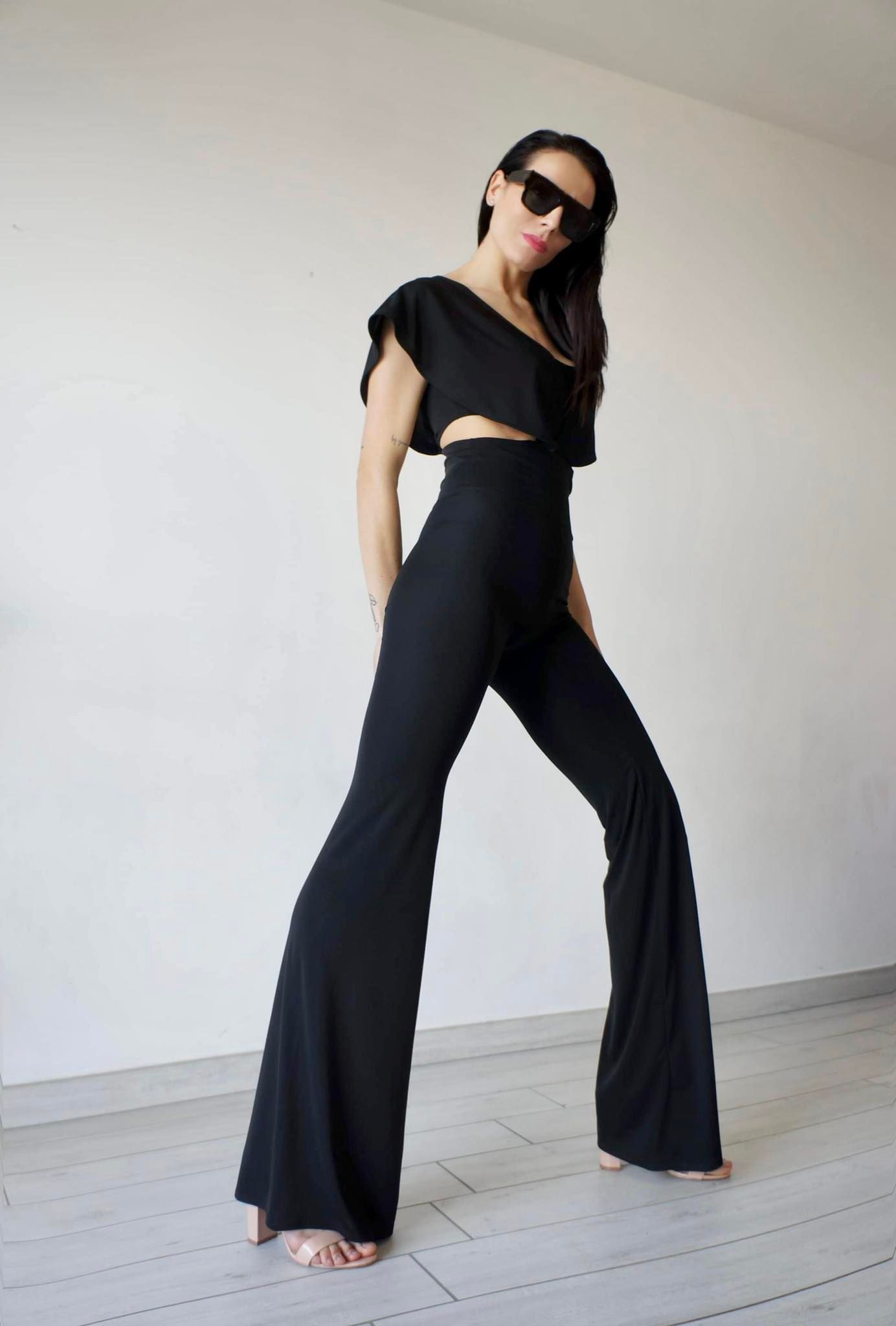 Flared pants in stretch viscose, you can wear it hight or low waist.