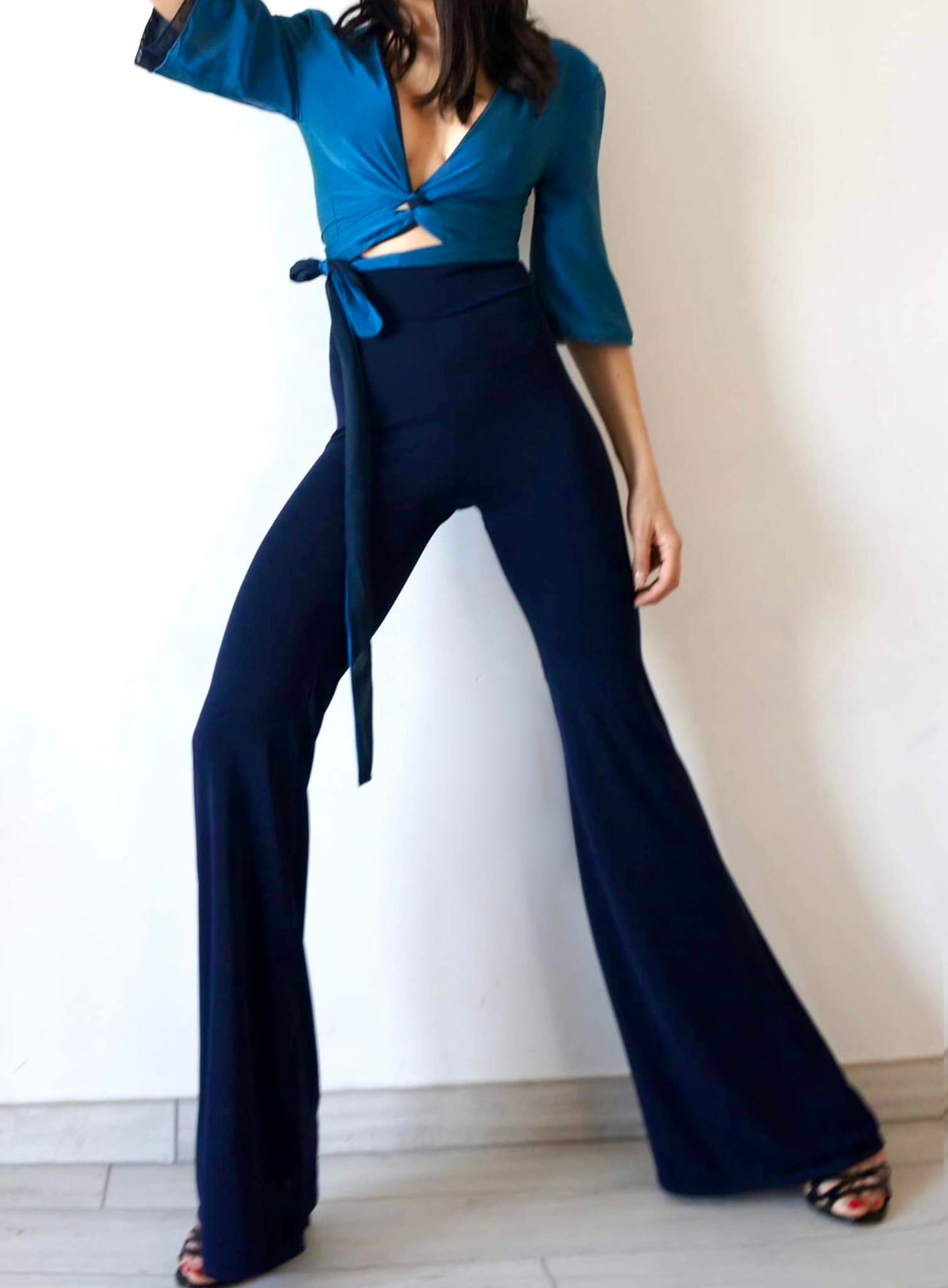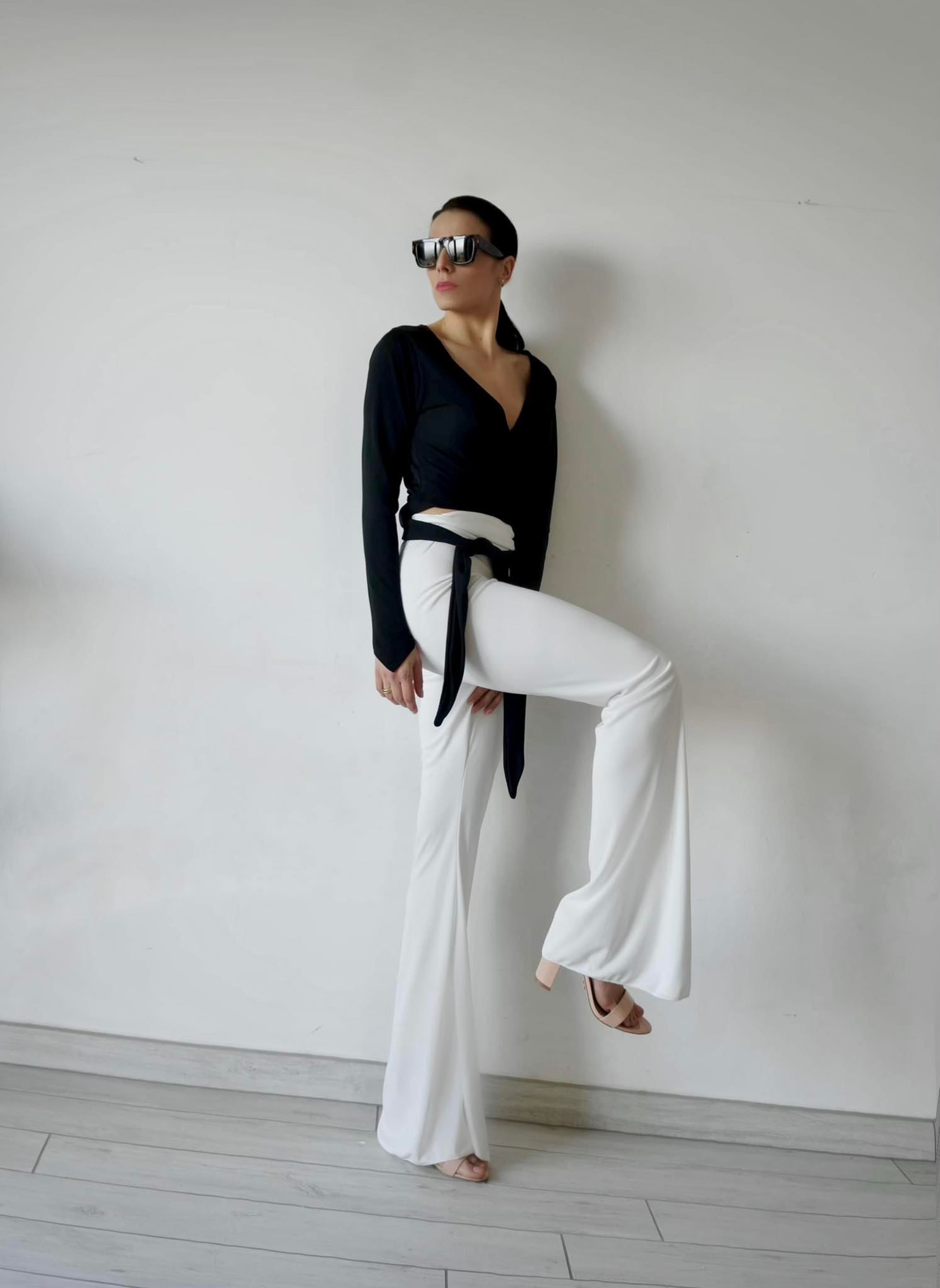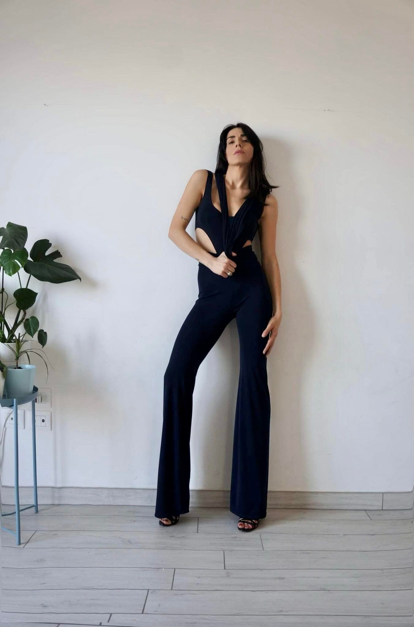 Flared pants in stretch viscose, you can wear it hight or low waist.