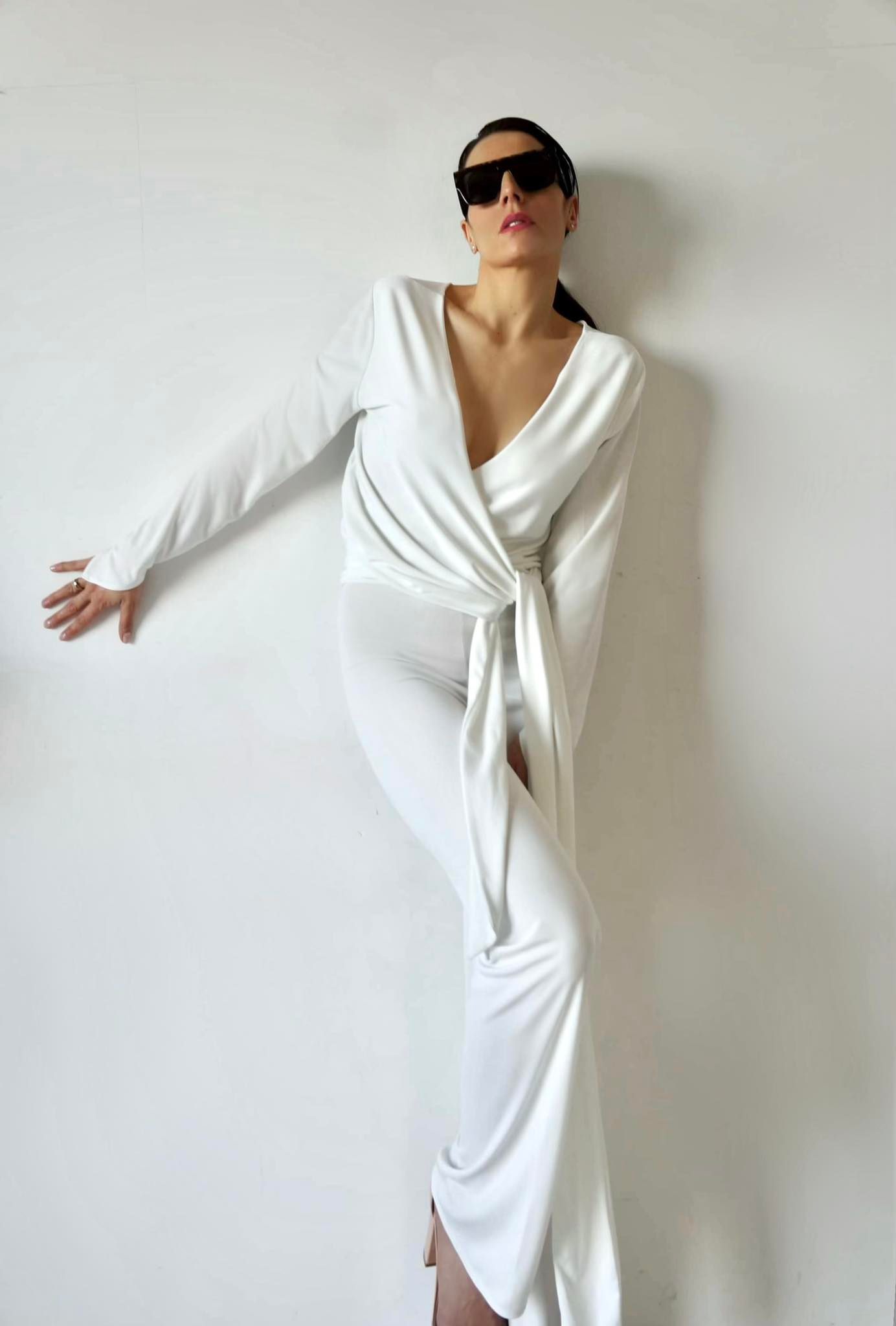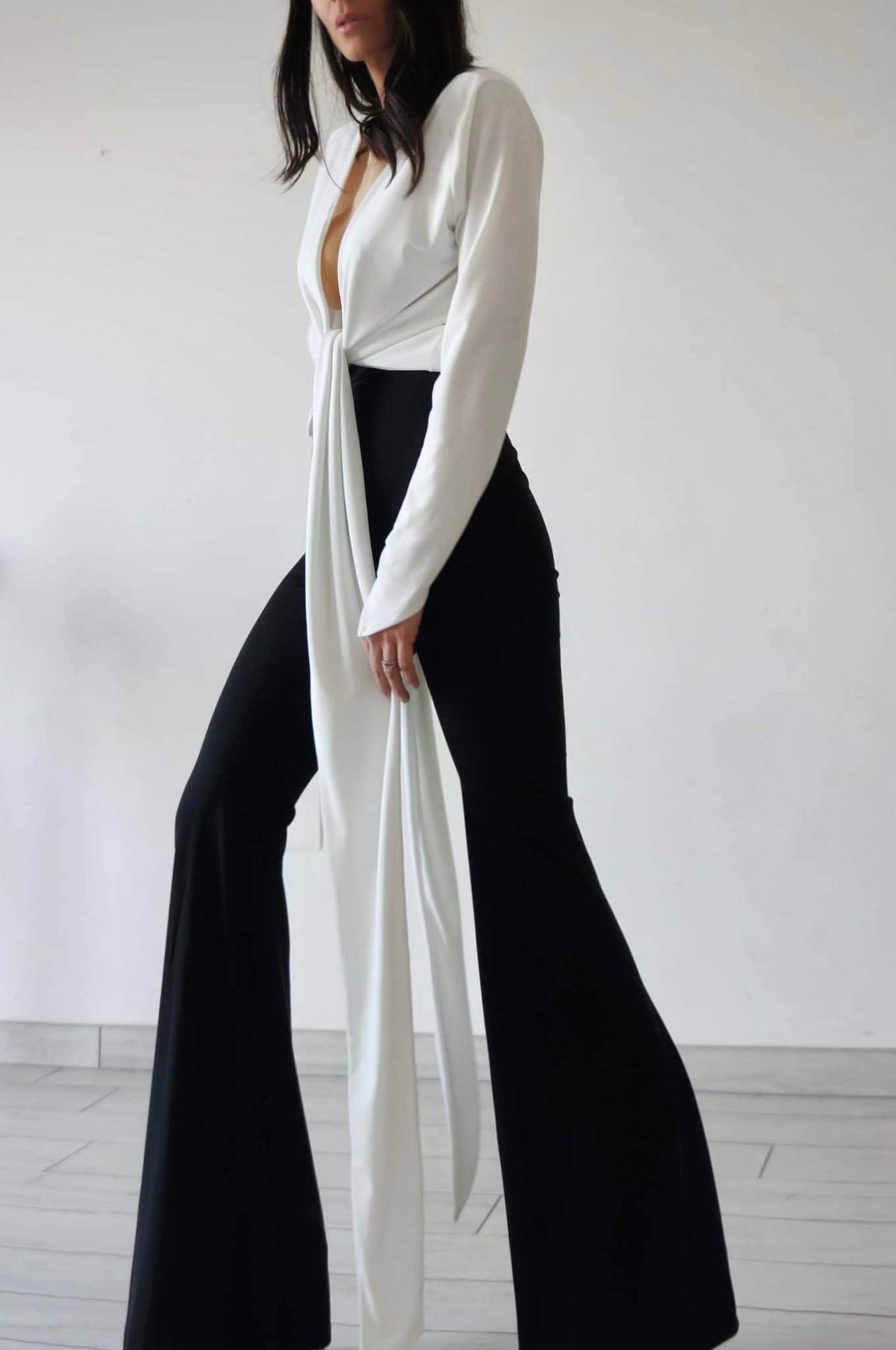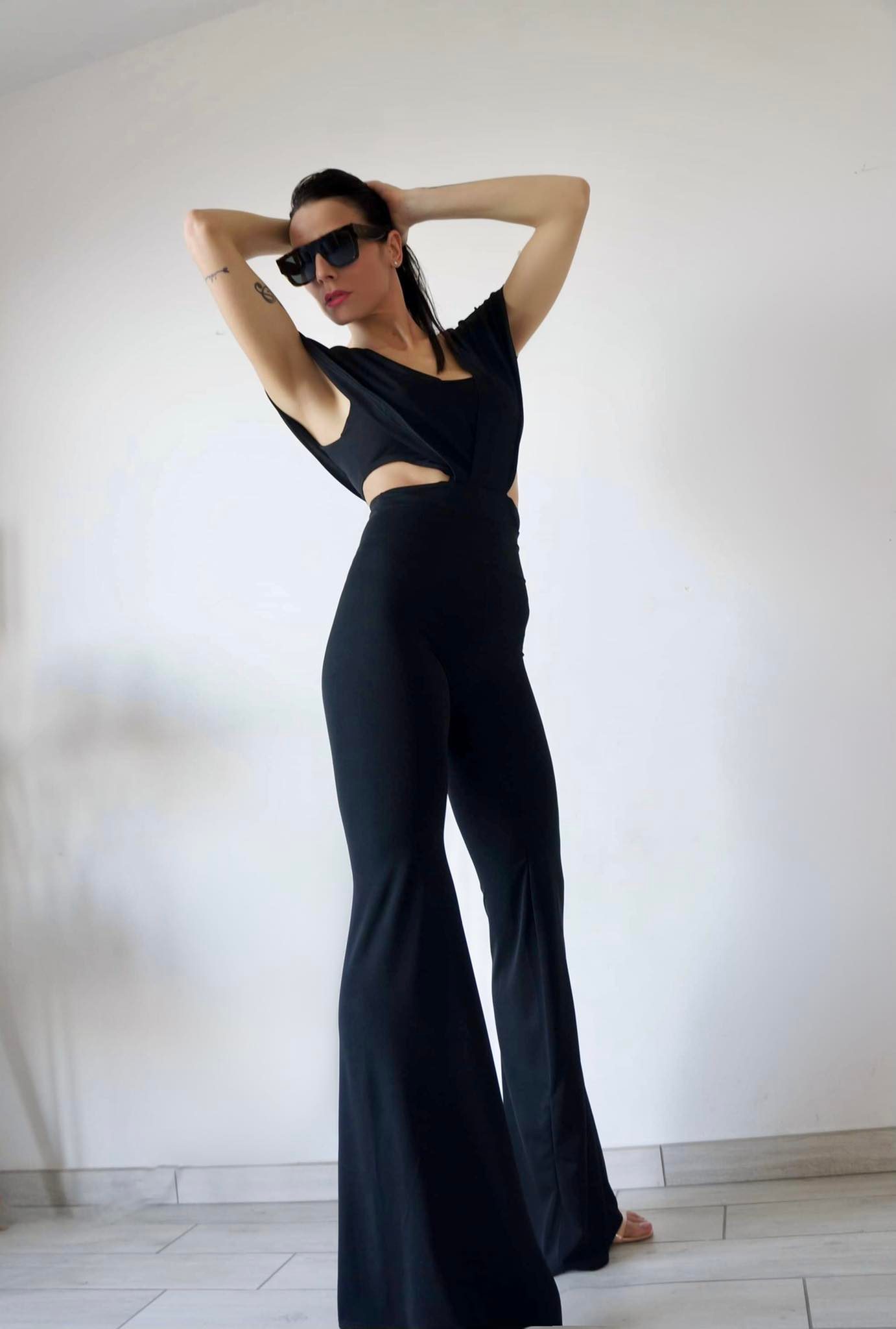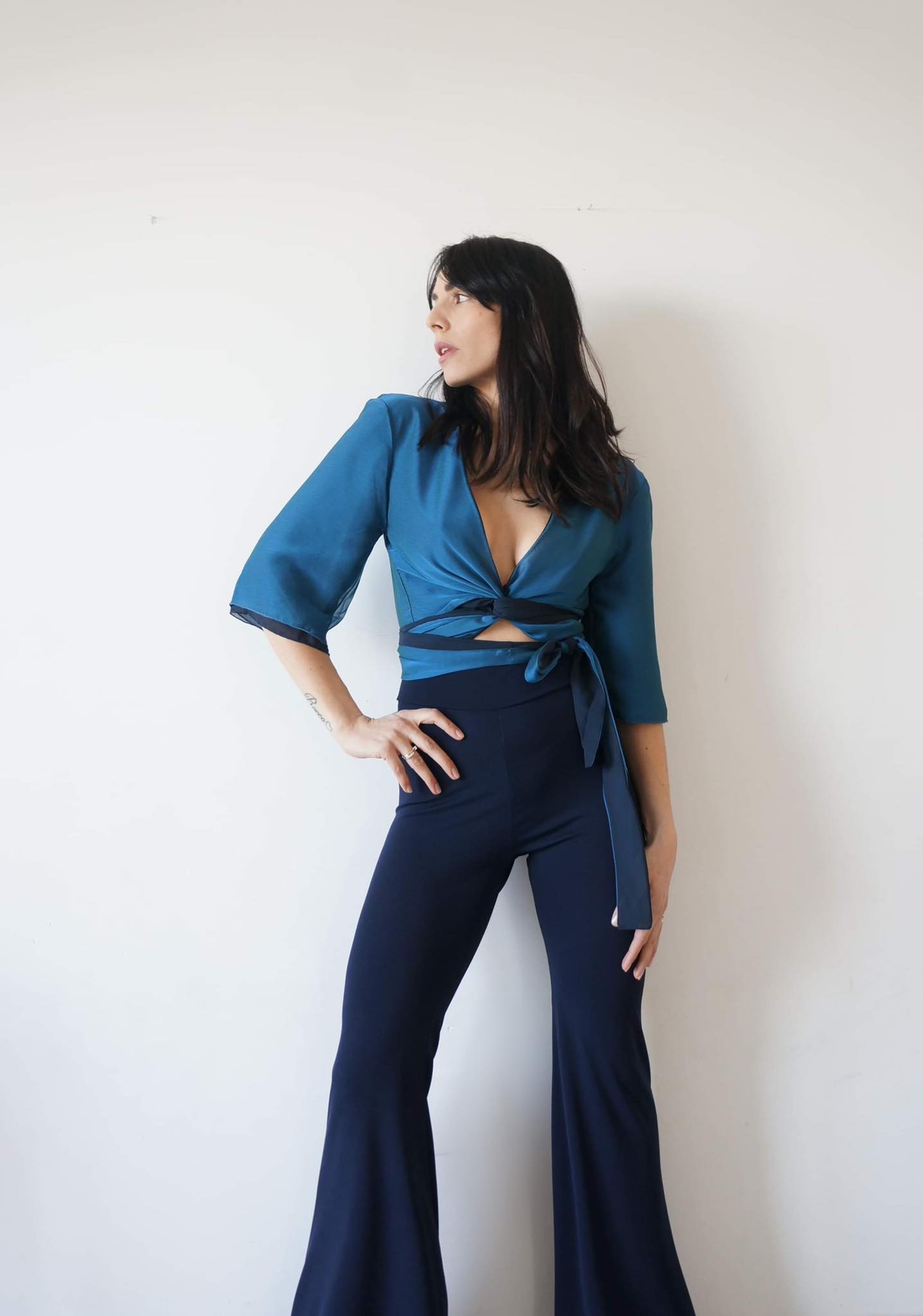 Flared pants in stretch viscose, you can wear it hight or low waist.