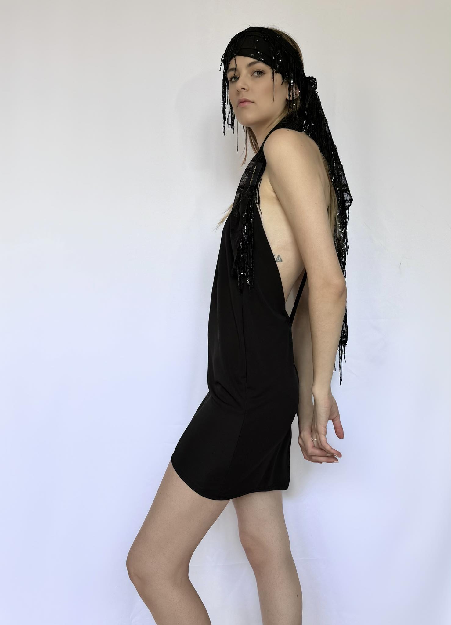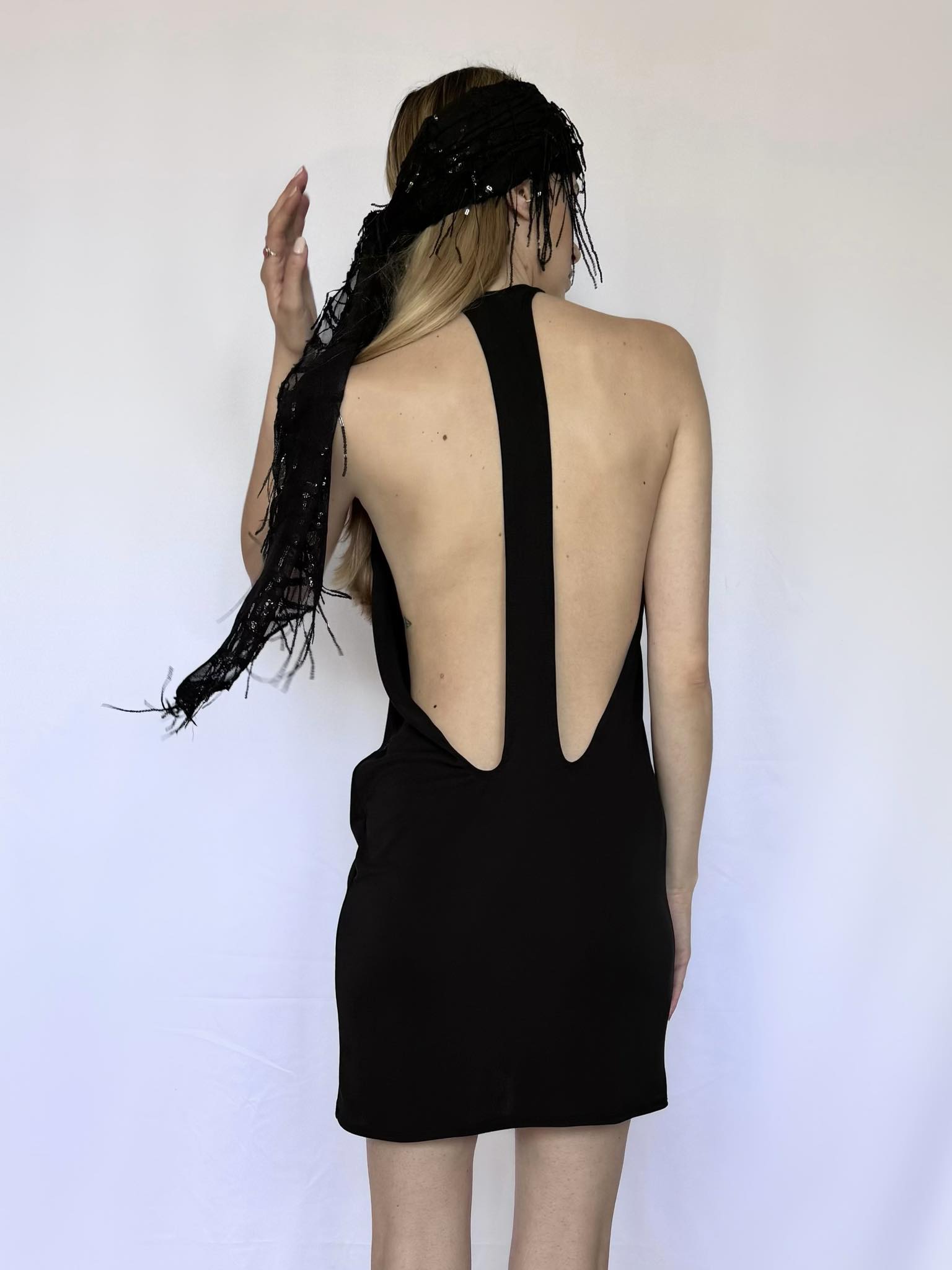 Viscose mini dress/ long tank in black, blue, white and green apple. The white is made with double layer of fabric