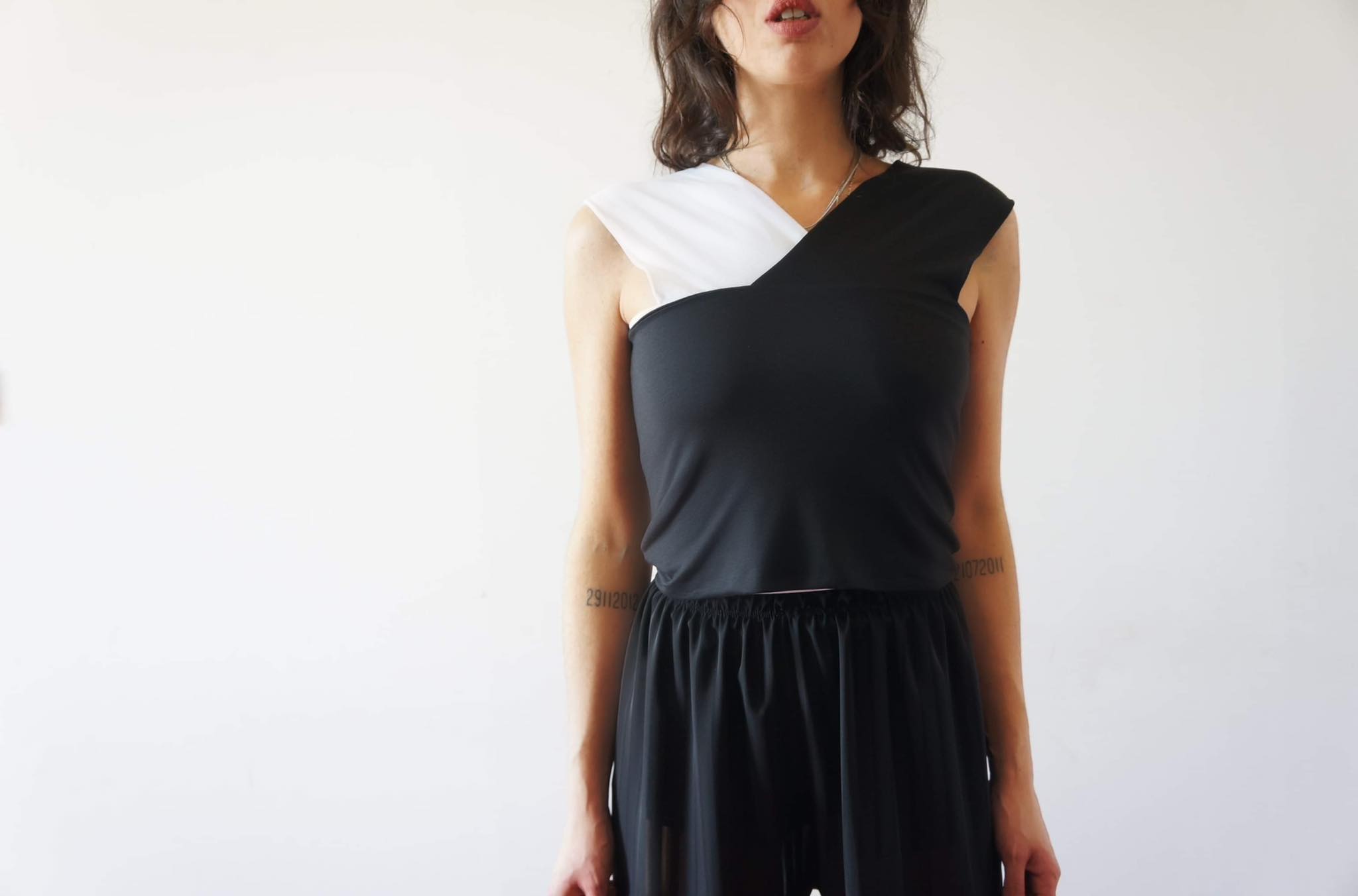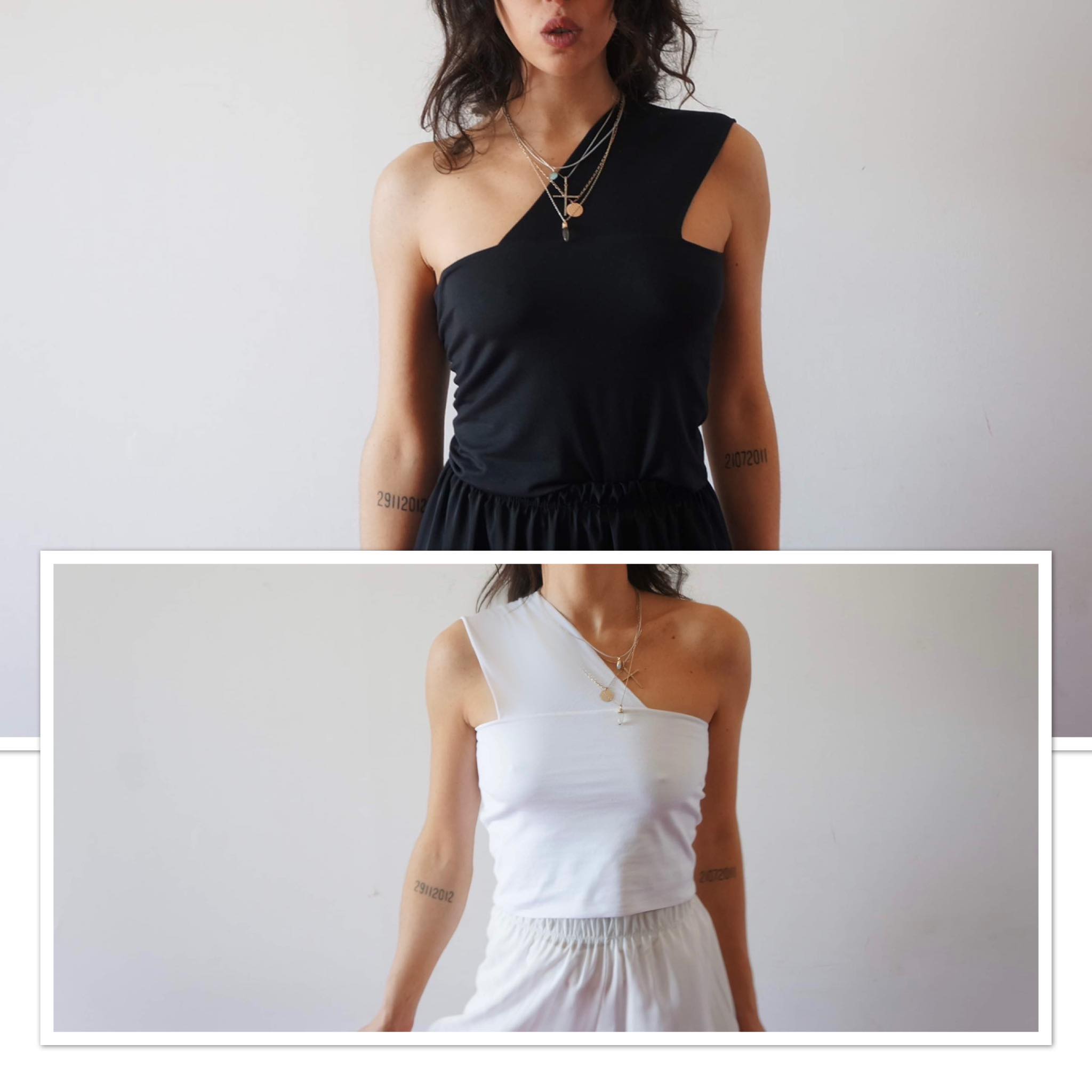 BLACK up | WHITE under | ( |_| square neckline front side )