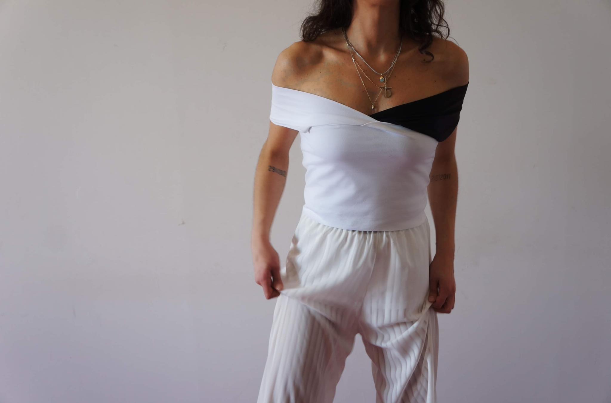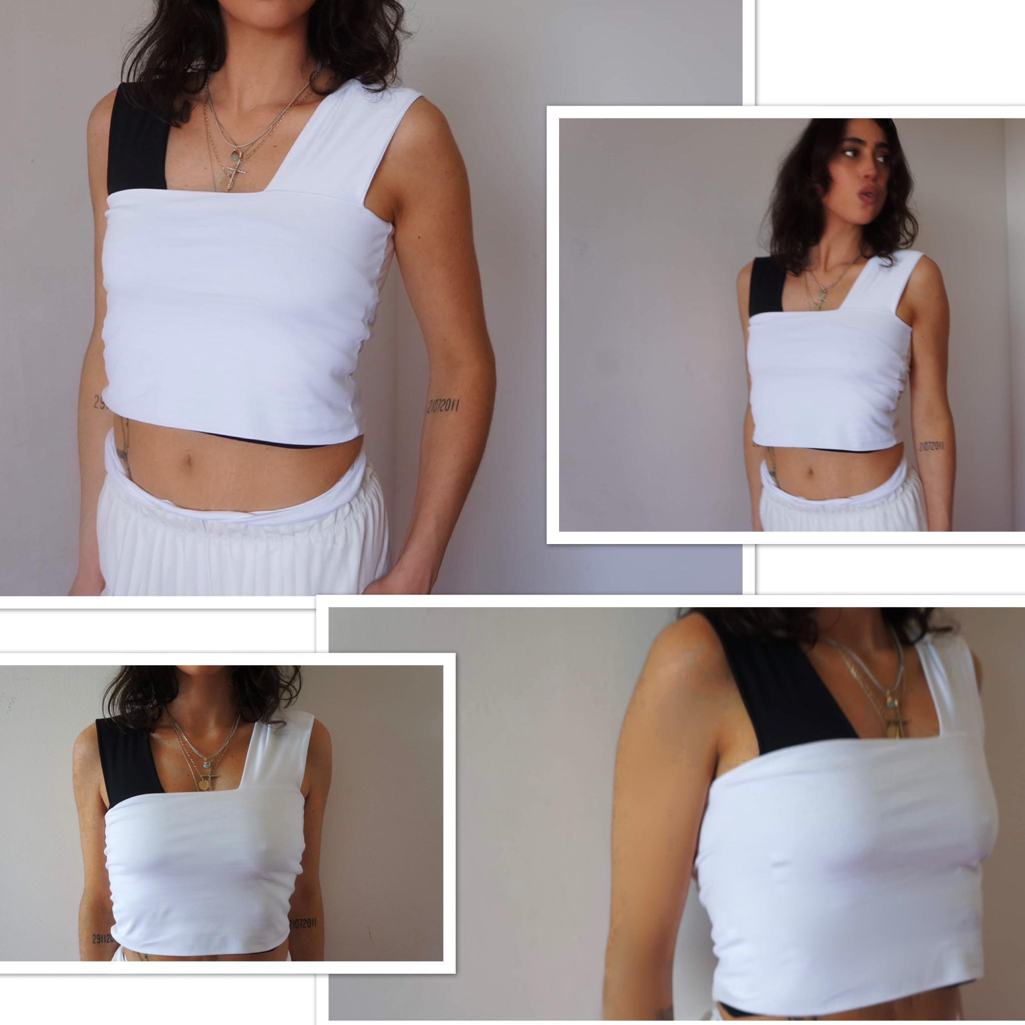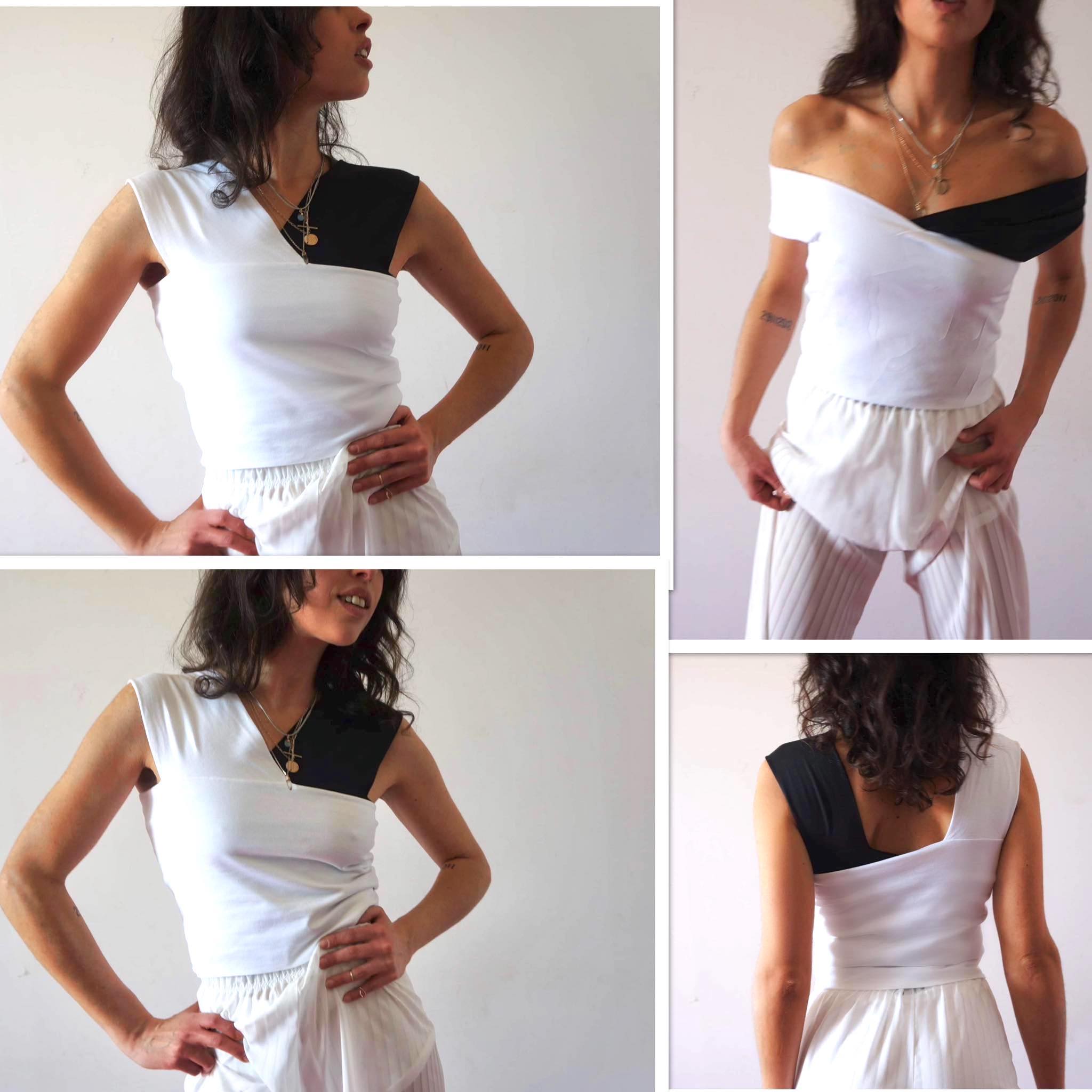 WHITE up | BLACK under | ( |_| square neckline front side )